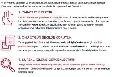 Yakın zamanda ameliyat geçirdiyseniz , iyileşme süreci konusunda endişelenmeniz doğaldır . Cerrahi veya ameliyat sonrası yaralar, organlara ulaşmak veya tıbbi işlemler gerçekleştirmek için deri ve dokularda yapılan kesiklerdir. Bu yaraların doğru şekilde bakımı, hızlı bir iyileşme ve gelecekteki komplikasyonlardan kaçınmak için çok önemlidir.
