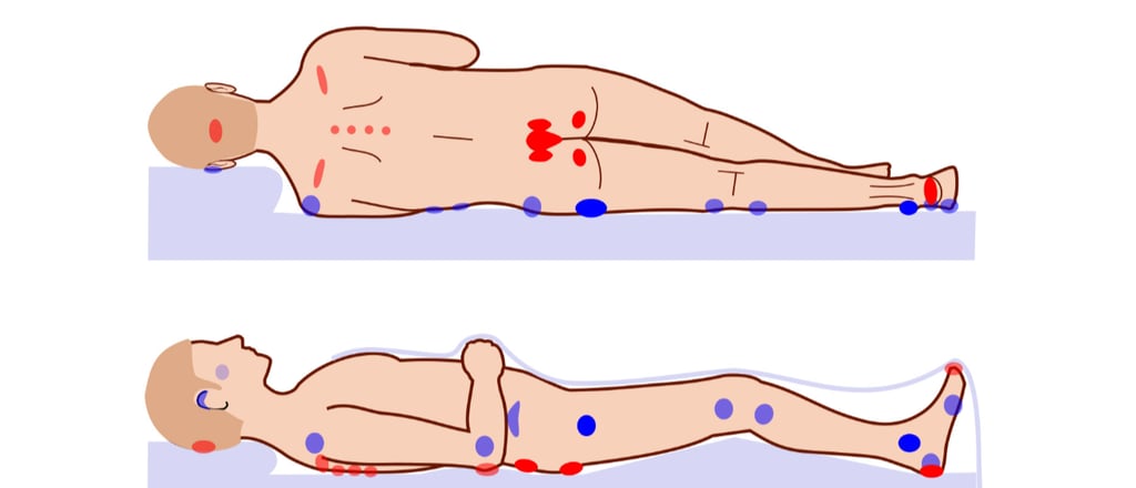 Doku, kemik ve zemin gibi sert cisimler arasında sıkışarak baskı altına alındığında, o dokuya giden kan akışı bozulur veya engellenir; bu da cildin bir bölümünün kızarmasına, tahriş olmasına veya yaralar oluşmasına neden olur. "Yatak yaraları" adından da anlaşılacağı gibi, bunlar ayrıca zemine (yatak takımlarına) sürtünme kuvvetinden de kaynaklanabilir.